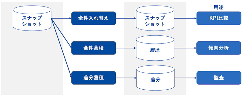 ●KPI比較はスナップショット、傾向分析は履歴、監査用途は差分と目的ごとに整理する