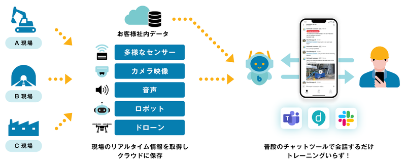 だが「そうした状況は生成AI技術により一変する」と道間氏は力を込める。「自然言語で質問すればテキストや各種グラフによる回答が得られる。状況を容易に、かつ迅速に把握できるため、ITスキルを問わずデータ活用を推進できる。建設現場をはじめ、さまざまな現場には既に多数のセンサーが導入されているだけに、多岐にわたる活用を想定できる」(同)とする。