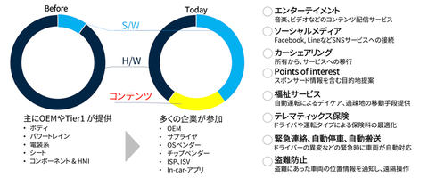 自動車の機能を実現する主役は現在、メカからソフトウェアへと移行しつつある。CASE(Connected:つながった、Autonomous:自動運転、Shared & Services:共有とサービス化、Electric:電動化)の進展により、自動車には多数の制御ユニットやセンサーが搭載され、クラウドなど社外のシステムと連動する機能も増えている。