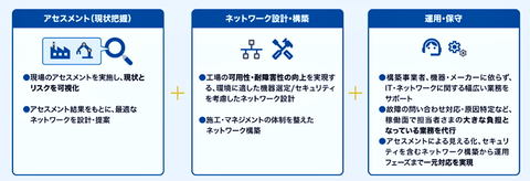 アセスメントでは、工場の現状を把握し、既設のネットワーク構成とリスクを可視化する。例えば「工場ネットワークの管理を担うことになったが構成が不明」「ネットワーク機器が無許可で接続されており管理ができていない」などの課題を明らかにするという。