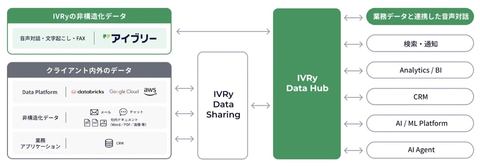 IVRy Data Hubは、外部システムとの接続機能や、データをコピーせずに直接参照する「ゼロコピー」機能も用意する。