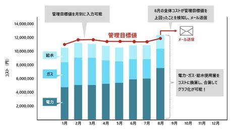 日立プラントサービスの「FEMS(Facility & Energy Management System)」は、工場や研究施設などの設備運用を支援するサービス(図1)。同サービスのエネルギー管理機能において、目標値の設定を、従来の時間別に加え、日別・月別でも設定できるようにする。管理目標値を超えた際に警報メールで通知できるようにする。