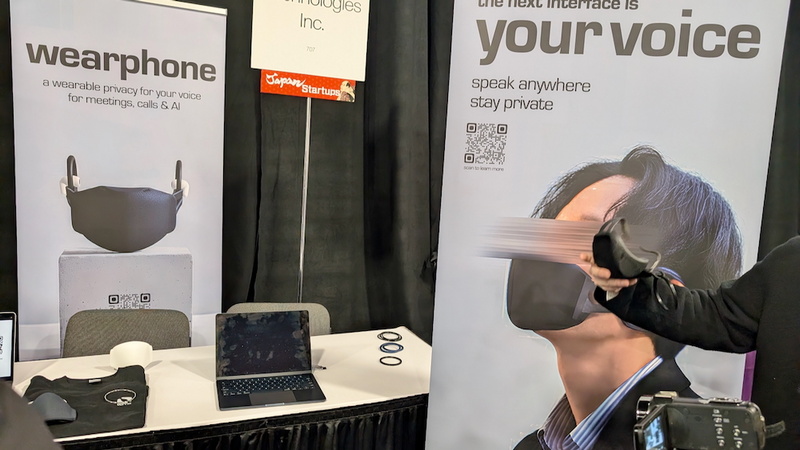 コロナ禍で増えたマスク型デバイスをリモートワーク向けに提案する日本企業も出展した。Verne Technologiesの「Wearphone」は、イヤホンを一体化したスマートマスクで、話し声をAI技術でコントロールする(写真5)。2026年春の発売を予定する。