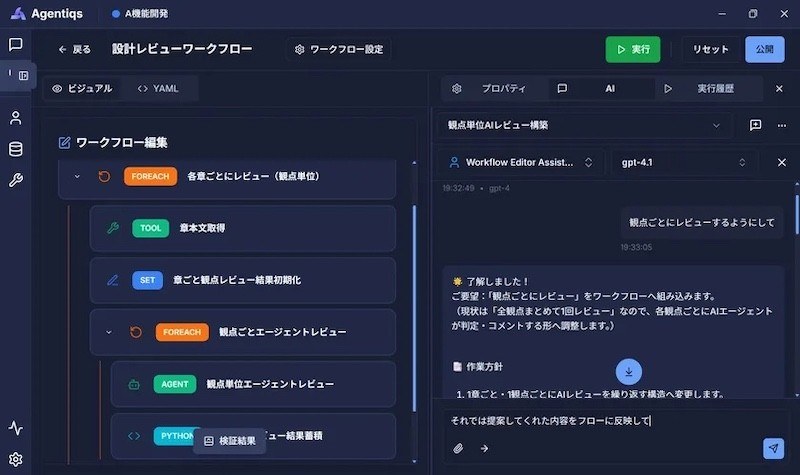 開発タスクは、AI処理とルールベース処理を組み合わせたワークフロー機能により構造化を図る。利用者やタイミングに依存することなく、網羅性・再現性を確保したAI利用により生産性を高められるとする。