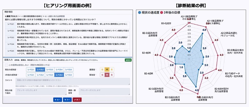 ヒアリングの結果はスコア化しレポートとして提示する。経営層が投資対効果を判断するための具体的な材料になるとしている。診断期間は約10営業日とする。