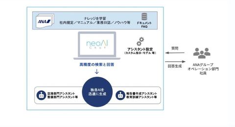 生成AI基盤には、neoAIが提供するAIチャットボットの構築基盤サービス「neoAI Chat」を採用した。機密情報を保護するためANAの専用クラウド基盤上で運用している。