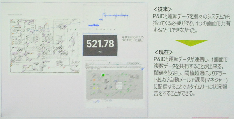 緊急トラブル時の情報共有では、P&IDや運転データに加えて、過去の工事報告書や検査報告書などの関連情報をCDFから取得できるようにした。「迅速な状況把握と原因分析が可能になり、初動対応の迅速化に貢献している」(秋山氏)。