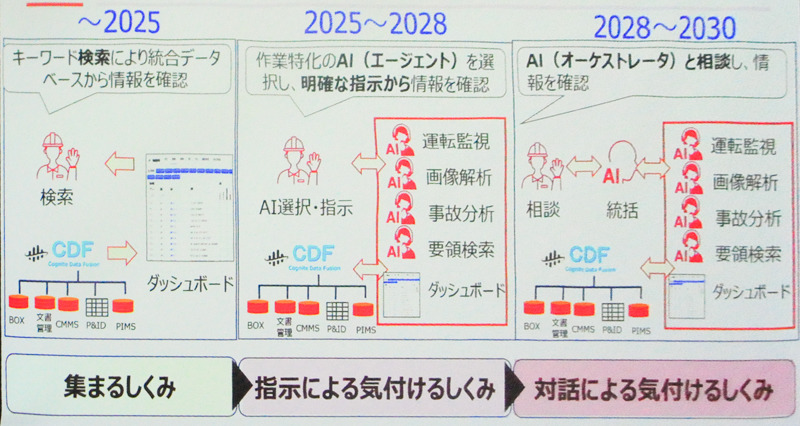 このCDFを基盤にした“自分たちで気づける仕組み”の構築に向けては「AIエージェントが作業内容を自ら判断し、必要な情報を提示する『統括AI』の実現を目標に掲げている」と秋山氏は話す(図3)。
