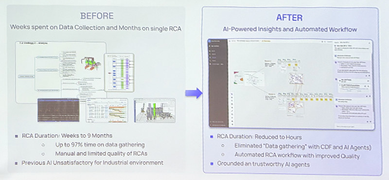 これらのAIエージェントに対しAker BPは、実際のRCAを対象にA/Bテストを実施し、効果を定量的に検証した。従来手法と同じ分析をAIエージェントで実行した結果「代表的なケースで70〜97%の効率向上を確認した」(ドイル氏)という(図2)。