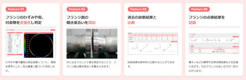 | 課題 | フランジ面の状態確認は熟練者の経験に依存し評価精度にバラツキがあり、プラントの安定稼働を妨げるリスクがある |