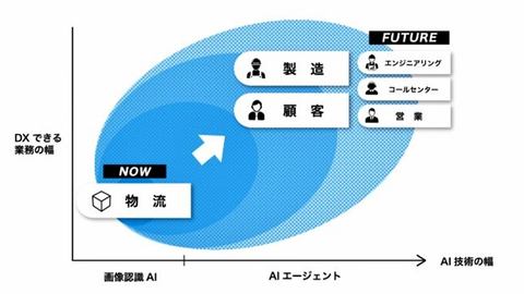 マテハン事業部で利用する業務特化型のAIエージェントとしては、営業、顧客、メンテナンス、製造の4業務を予定する。営業では、対話型で面談シートから顧客ニーズを抽出し、提案資料を自動したり他社との差別化ポイントを提示したりする。商談から契約までのリードタイム短縮と工数軽減を見込む。