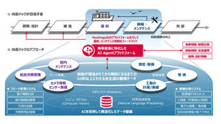 メンテナンスでは、点検報告書や納入図面などを学習させ属人化を解消するほか、保守対応方法を提示しトラブル発生時の復旧リードタイムを短縮する。製造では過去の生産データから最適な生産・段取りスケジュールを検索・提示し、リードタイム短縮と在庫圧縮を図りたい考えだ。
