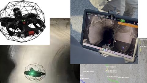 実証では、産業用ドローン「ELIOS 3」(ブルーイノベーション製)を使って下水道管路内を撮影する(図2)。その撮影データを「eドローンAI」(NTT e-Drone Technology製)で分析し、管路のひび割れや腐食を診断する。点検データは「下水道スマートメンテナンスツール」(NTTインフラネット製)で一元管理し、可視化と点検票の自動作成を可能にする。