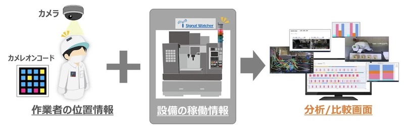 | 活用しているデータ | 作業者のヘルメットなどに取り付けたカラーバーコードから読み取った位置や滞在時間、動線などの情報、積層表示灯の表示状況 |