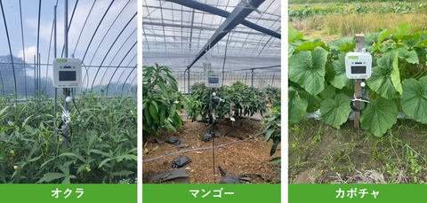IoTシステムが対象にする主な作物は、パプリカ、オクラ、レザリーフファン、マンゴーなど。2025年7月に町内24の農家を対象に導入し、2025年9月からはカボチャを栽培する6戸を加えた計30戸が利用する。